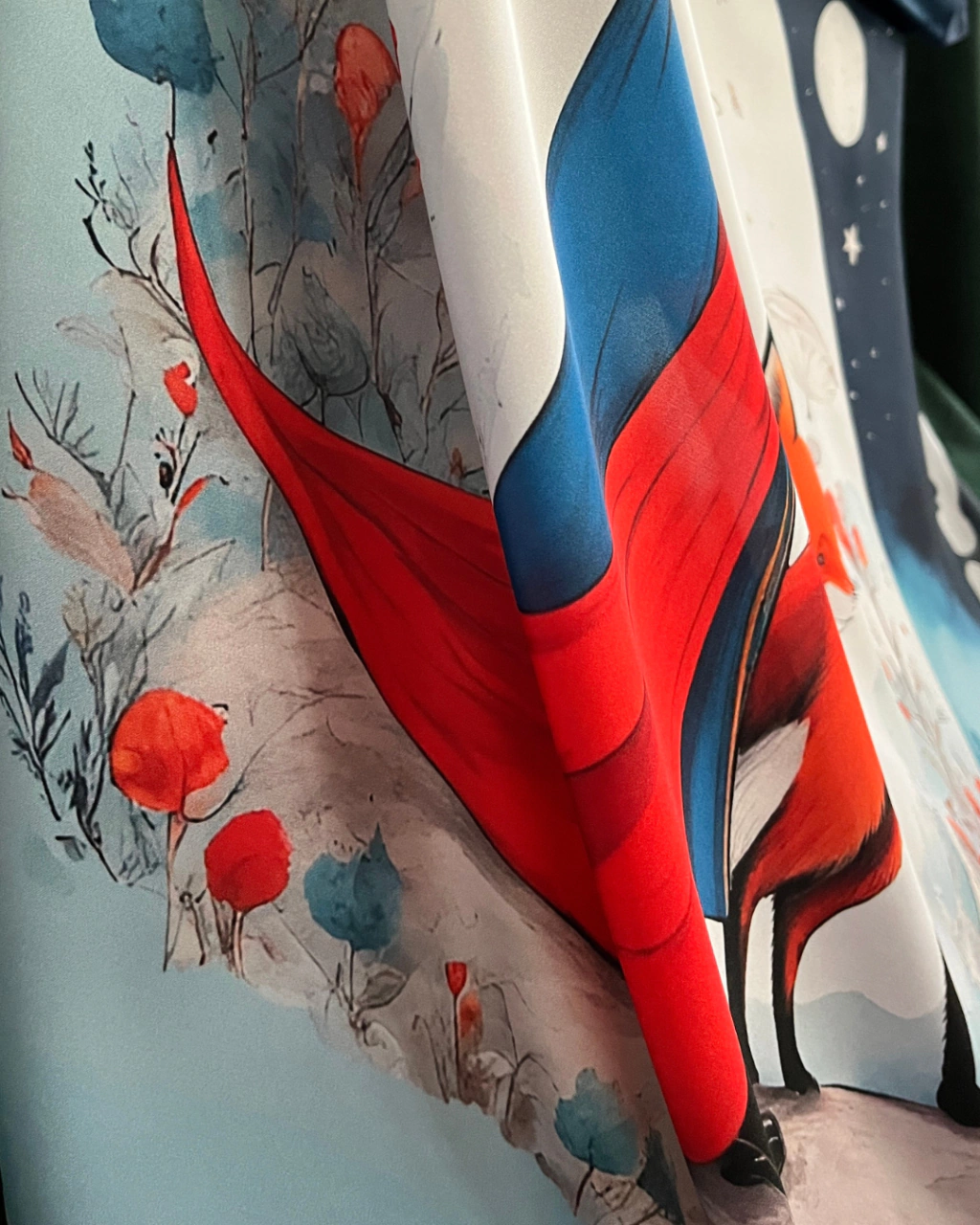Un pañuelo de satén que con la estampa de acuarelas nos transporta al cuento y la magia del principito.